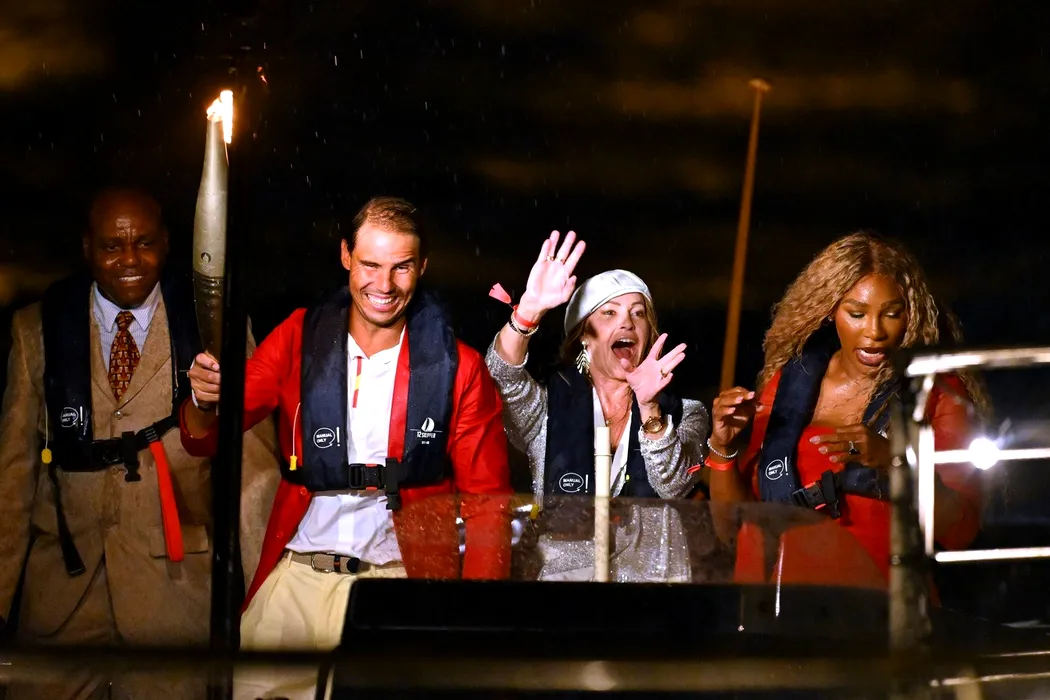 RECORD DATE NOT STATED XXXIII Olympic Games, Olympische Spiele, Olympia, OS Paris 2024 Opening Ceremony Time French Open Winner Rafael Nadal of Team Spain, American Former Tennis Player Serena Williams, American Track Athlete Carl Lewis and Romanian Gymnast Nadia Comaneci during the Opening Ceremony of the Olympic Games Paris 2024 at Rio Sena on July 26, 2024 in Paris, France. PARIS FRANCE FRANCE Copyright: xJorgexMartinezx 20240726175550_OG_P2024_OPEN_CER_NADAL170,Image: 892813315, License: Rights-managed, Restrictions: PUBLICATIONxNOTxINxMEXxCHNxRUS, Credit images as "Profimedia/ IMAGO", Model Release: no