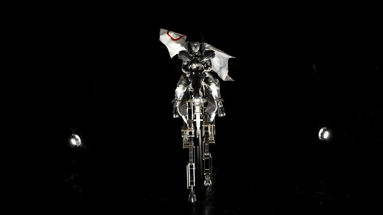 An artist performs in Paris, France, during the opening ceremony of the 2024 Summer Olympics, Friday, July 26, 2024.,Image: 892788540, License: Rights-managed, Restrictions: This content is intended for editorial use only. For other uses, additional clearances may be required., Model Release: no