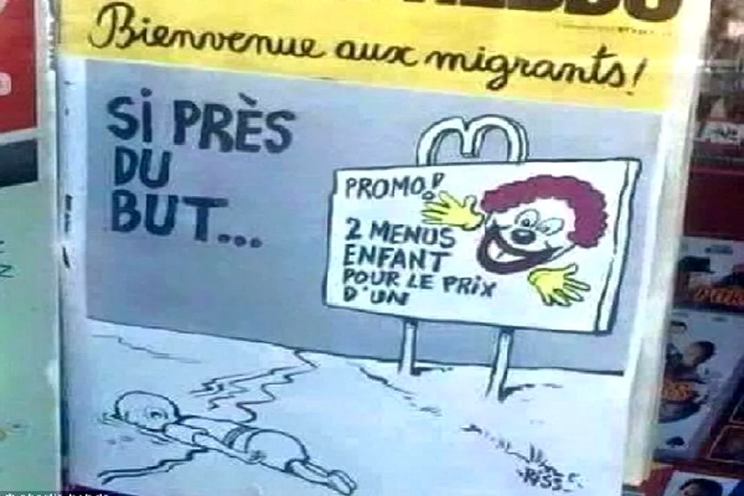 Charlie Hebdo stârnește, din nou, controverse: mesajul caricaturilor despre băiețelul sirian găsit mort pe o plajă în Turcia