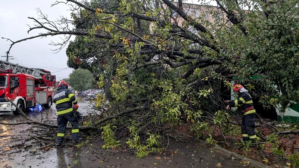 Efectele Ciclonului Barbara. Bătrână, salvată din calea viiturii în Siliștea. Zeci de mașini distruse și copaci căzuți în Capitală și în Ilfov
