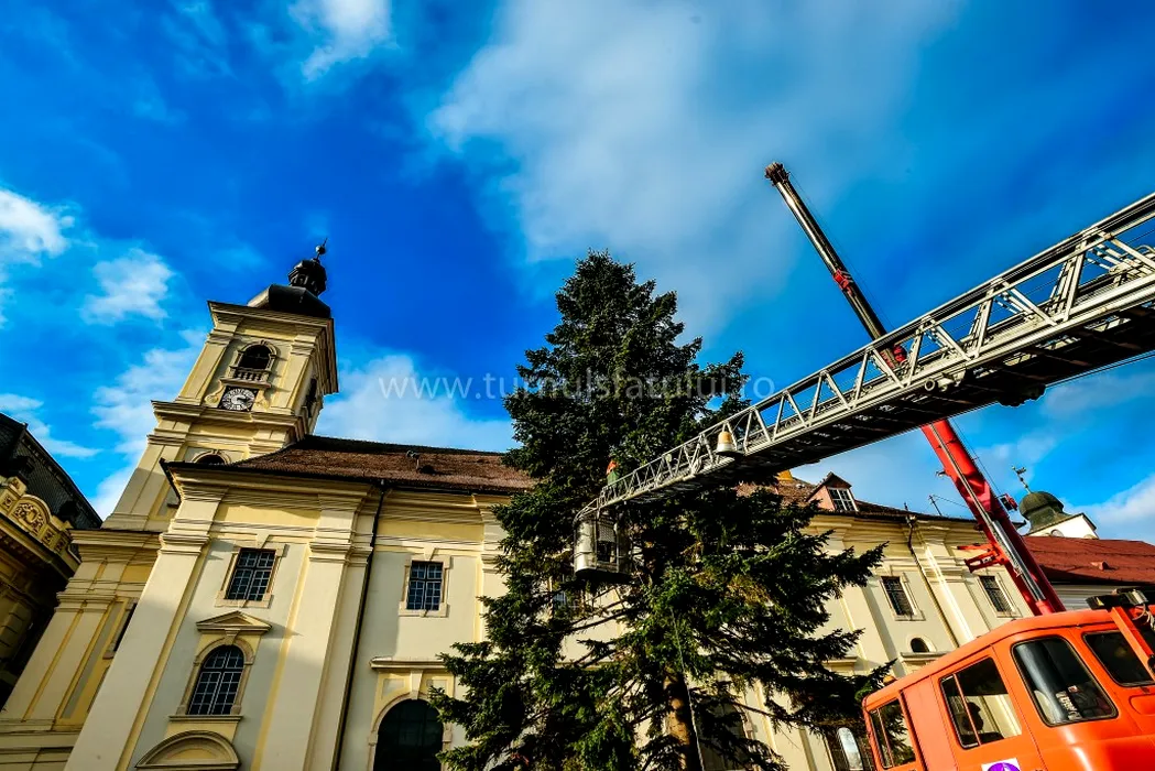 Cine a donat bradul de 19 metri, amplasat în centrul Sibiului pentru Târgul de Crăciun. Galerie FOTO
