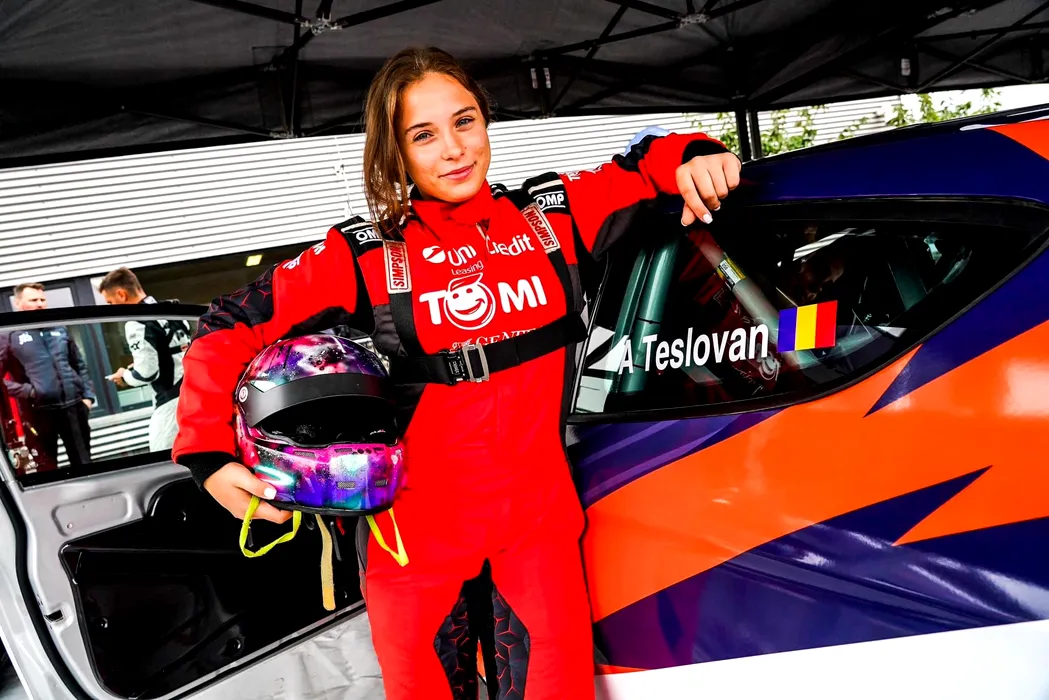 Cine e tânăra care la 18 ani pilotează raliuri și schimbă o roată în 90 de secunde!