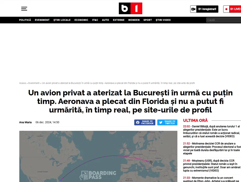 Cine era, de fapt, în avionul misterios Bombardier Global Express, care a aterizat la București venind din SUA, despre care a scris toată presa