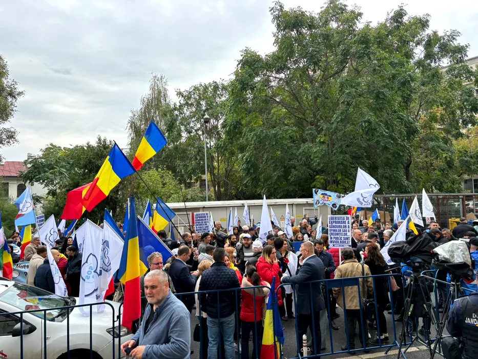 VIDEO. Circ în fața Parchetului General. Șoșoacă, așteptată de sute de susținători cu vuvuzele și pancarte