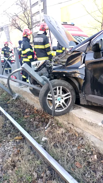 Circulația tramvaielor 41 a fost blocată două ore în urma unui accident. Un șofer a ajuns cu mașina pe linie