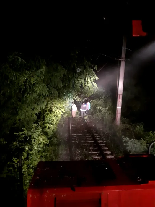 Circulația trenurilor, afectată de vremea severă. Probleme pe mai multe magistrale feroviare din cauza copacilor prăbușiți după furtuni | GALERIE FOTO