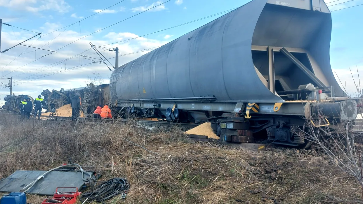 Circulaţie feroviară ÎNCHISĂ în continuare între Craiova şi Caracal, după ce 11 vagoane cu cereale au deraiat