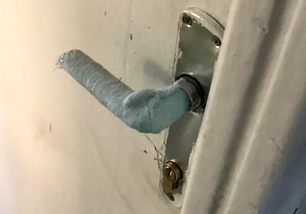 Clanțe înfășurate cu tifon îmbibat în spirt, la ușile unei primării din județul Olt. Ce explicație are edilul