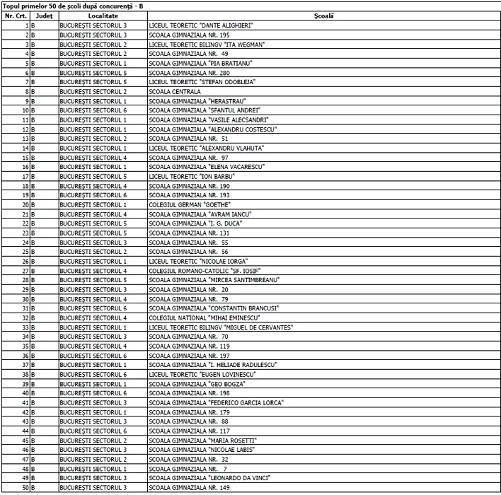 CLASA PREGĂTITOARE 2013. TOP 50 cele mai căutate școli din BUCUREȘTI