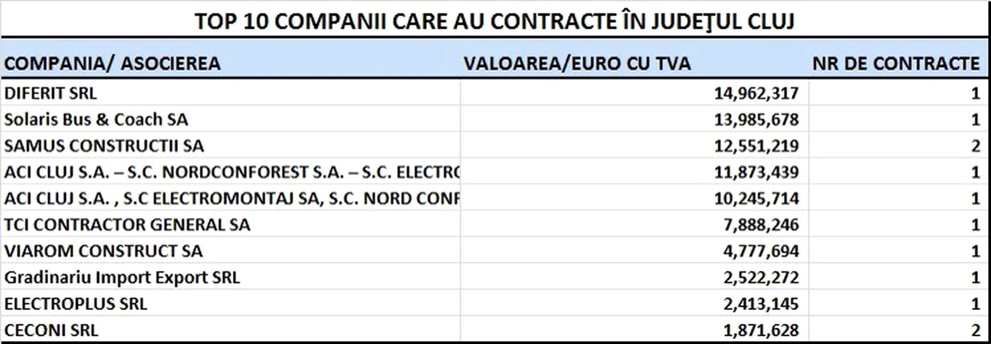 CLUJ. Unde au mers banii publici în 2014. Topul firmelor care au contracte locale cu statul