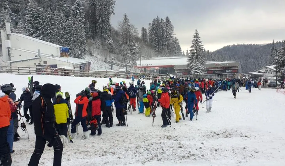 Coadă de aproape o oră la telegondolă, în Poiana Brașov! Imagini de la fața locului