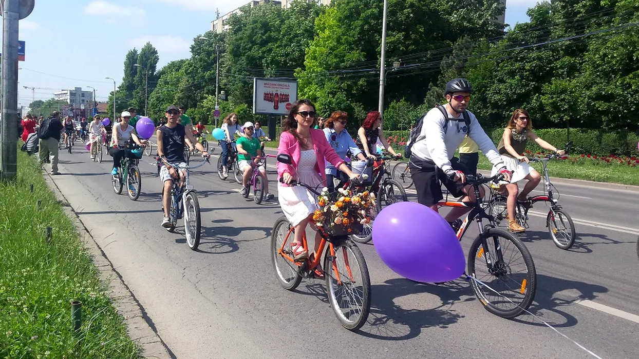 „Cochete pe biciclete”. Pedalare pe tocuri la Timișoara: Bicicleta e cel mai frumos accesoriu al unei femei. FOTO