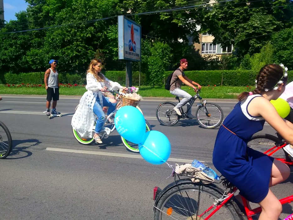 „Cochete pe biciclete”. Pedalare pe tocuri la Timișoara: Bicicleta e cel mai frumos accesoriu al unei femei. FOTO