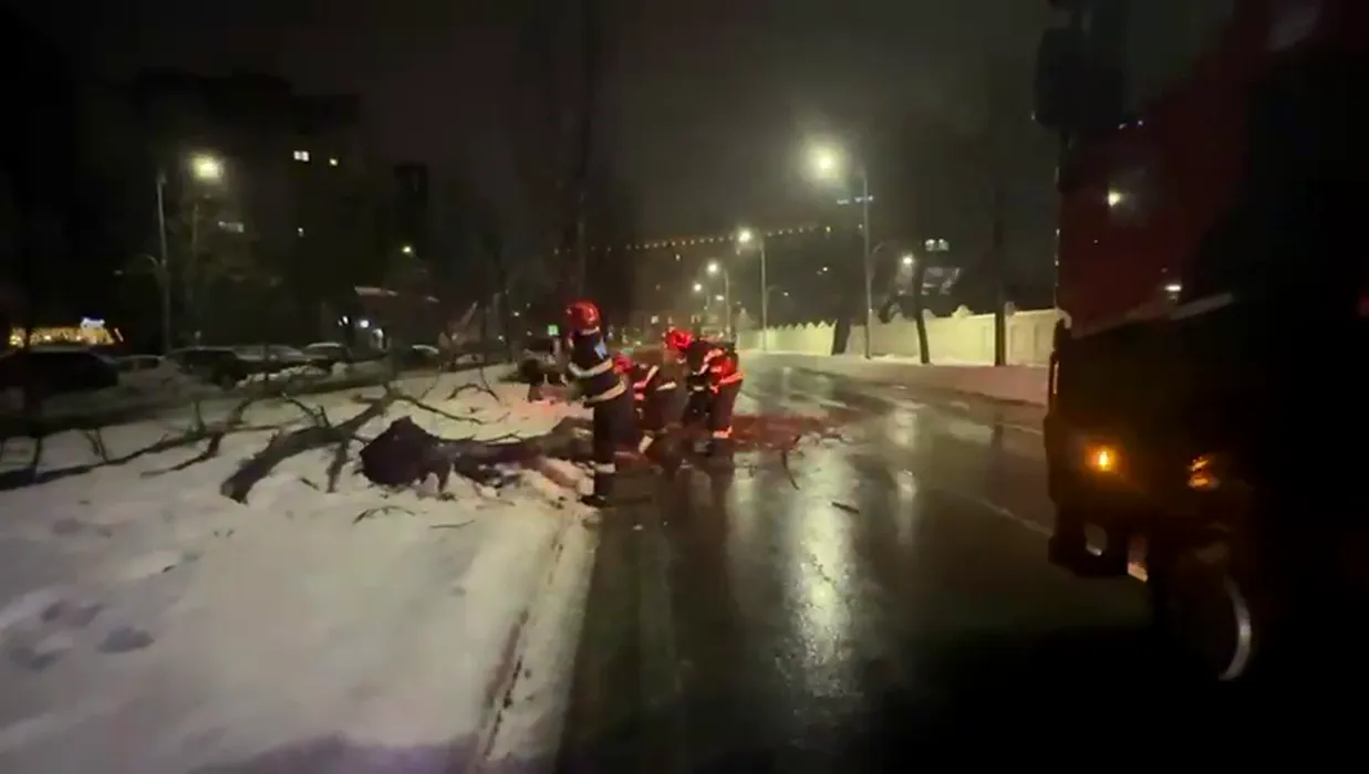 GALERIE FOTO: Cod galben de ninsori în București și alte 17 județe din țară. Viscolul a smuls copacii din rădăcini, iar mai multe autoturisme au fost avariate