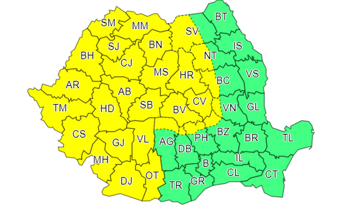 COD GALBEN de ploi și vânt sâmbătă și duminică, în jumătate de țară. Care sunt zonele afectate