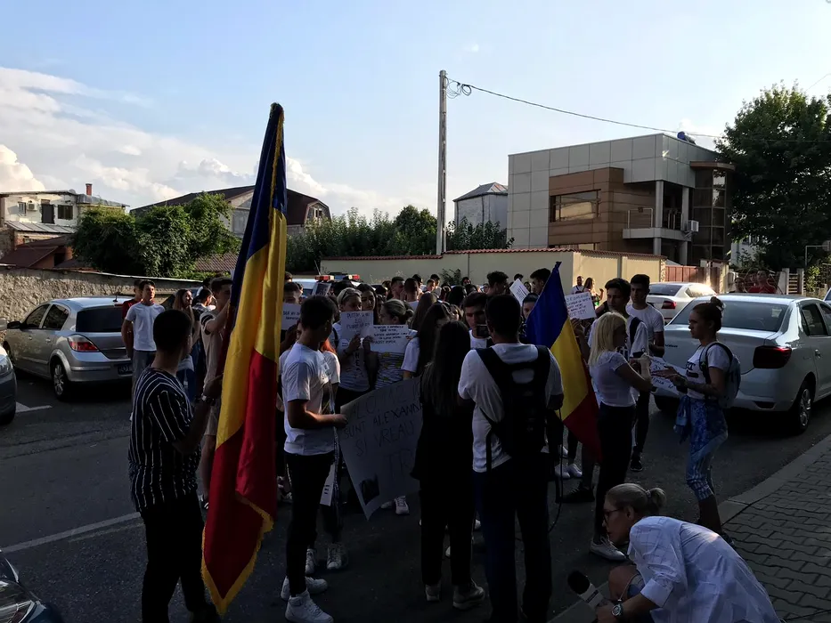 Colegii Alexandrei protestează în fața Poliției din Caracal: Alo, 112, sunt Alexandra și vreau să trăiesc. Trebuie să suni de miercuri seară dacă ai probleme joi