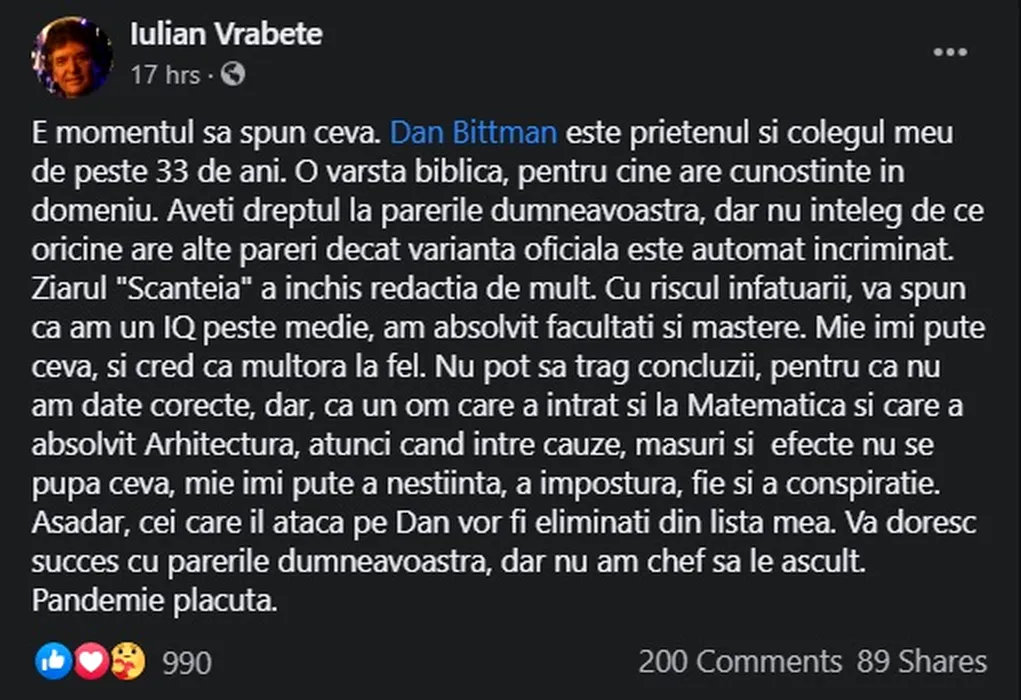 Colegul de trupă al lui Dan Bittman sare în apărarea lui! Mugurel Vrabete: Mie îmi pute a neștiință, a impostură, fie și a conspirație”