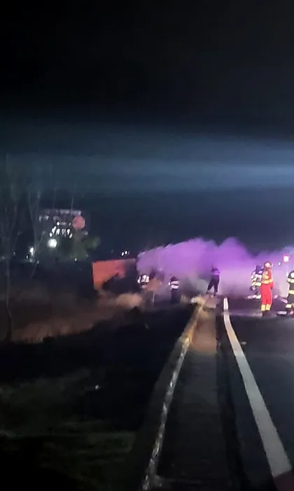 Coliziune între două TIR-uri, urmată de un incendiu. Un șofer a murit pe loc