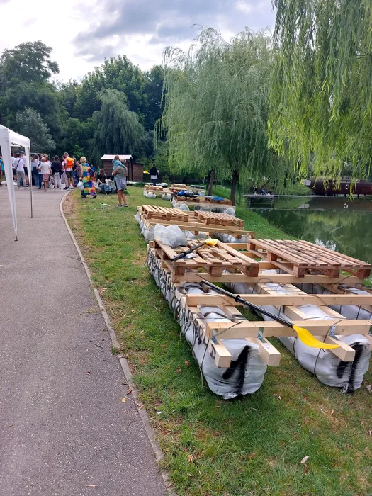 Competiție inedită pe lac, în Craiova. Mai mulți elevi s-au întrecut cu plute făcute din PET-uri