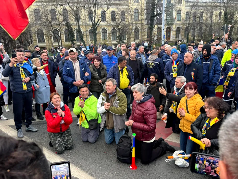 Minerii protestează în Piața Victoriei, 24 martie.