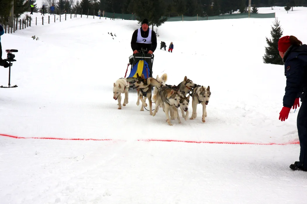 Concurs inedit în Pasul Tihuța: Sănii trase de câini Husky. GALERIE FOTO