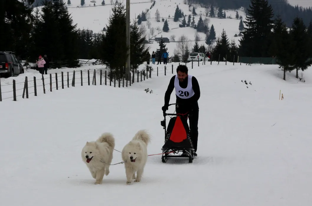 Concurs inedit în Pasul Tihuța: Sănii trase de câini Husky. GALERIE FOTO
