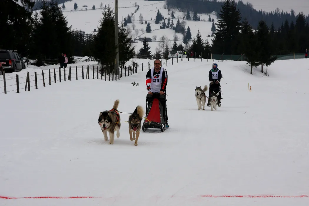 Concurs inedit în Pasul Tihuța: Sănii trase de câini Husky. GALERIE FOTO