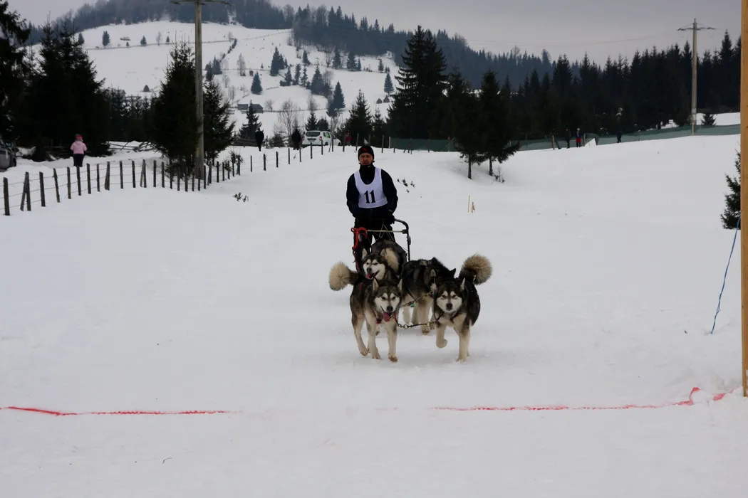 Concurs inedit în Pasul Tihuța: Sănii trase de câini Husky. GALERIE FOTO