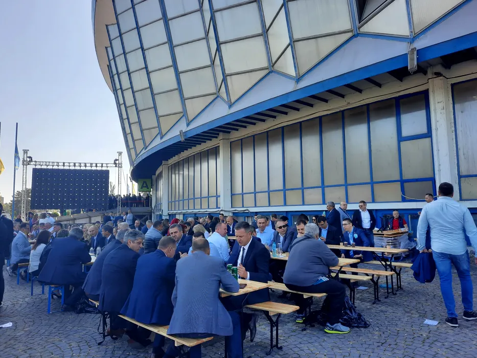 FOTO & VIDEO | Congresul PNL. Au sfârâit grătarele la Romexpo. Cârnați, mici și pastramă, stropite din belșug cu bere