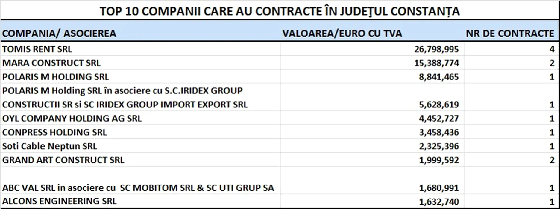 CONSTANȚA. Unde au mers banii publici în 2014. Topul firmelor care au contracte locale cu statul