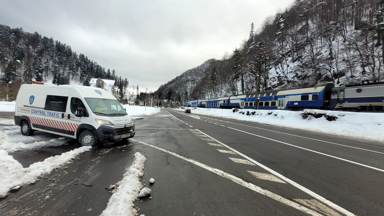 FOTO | Controale pe Valea Prahovei pentru depistarea șoferilor care nu respectă regulile de circulație pe timp de iarnă. „Se vor desfășura în special în perioadele cu avertizări meteo”