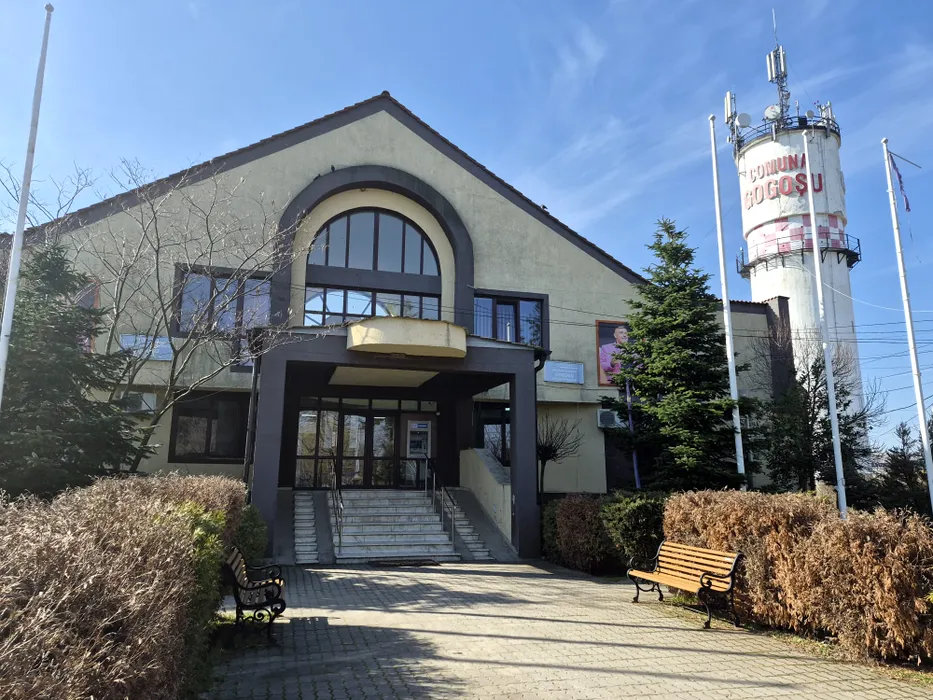 Pe fațada unei primarii din Mehedinți au apărut două tablouri cu primarul decedat. Edilul mort e portretizat cu paharul de vin în mână, îmbrăcat în roz