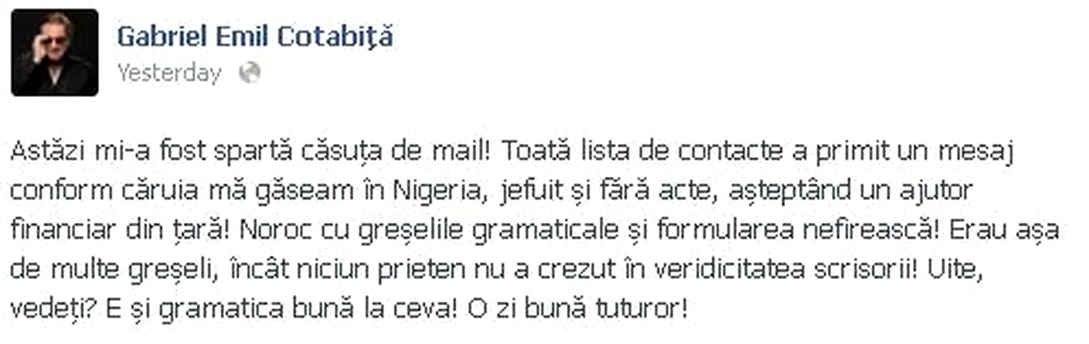 Contul de e-mail al lui Gabriel Cotabiță a fost spart. Ce mesaj au trimis hackerii