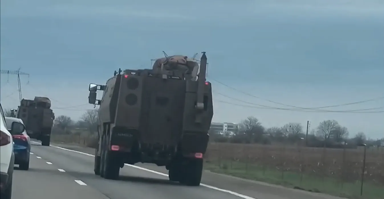 Convoi de vehicule militare franceze pe A1. Imaginile surprinse în urmă cu câteva momente
