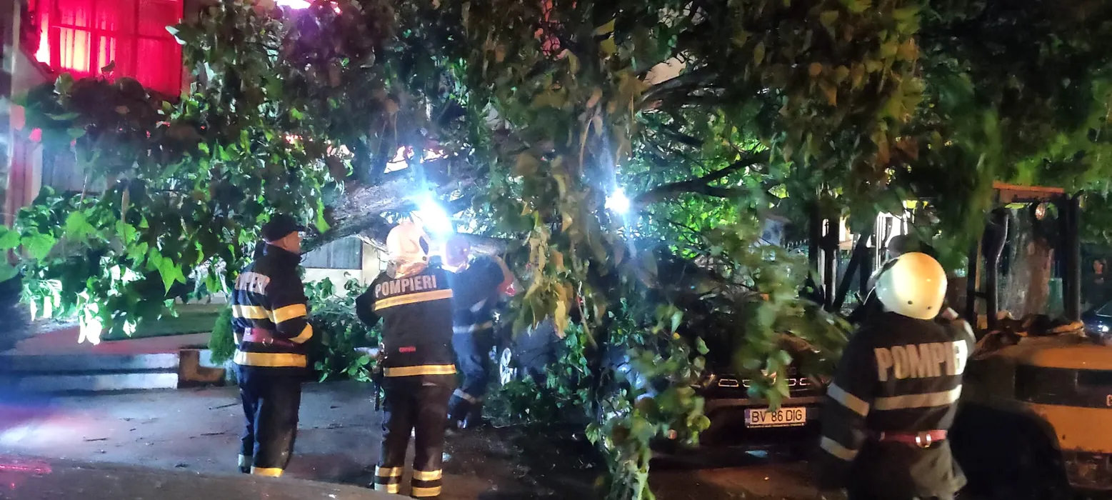 Un copac s-a prăbușit peste o mașină. Două persoane au ajuns de urgență la spital