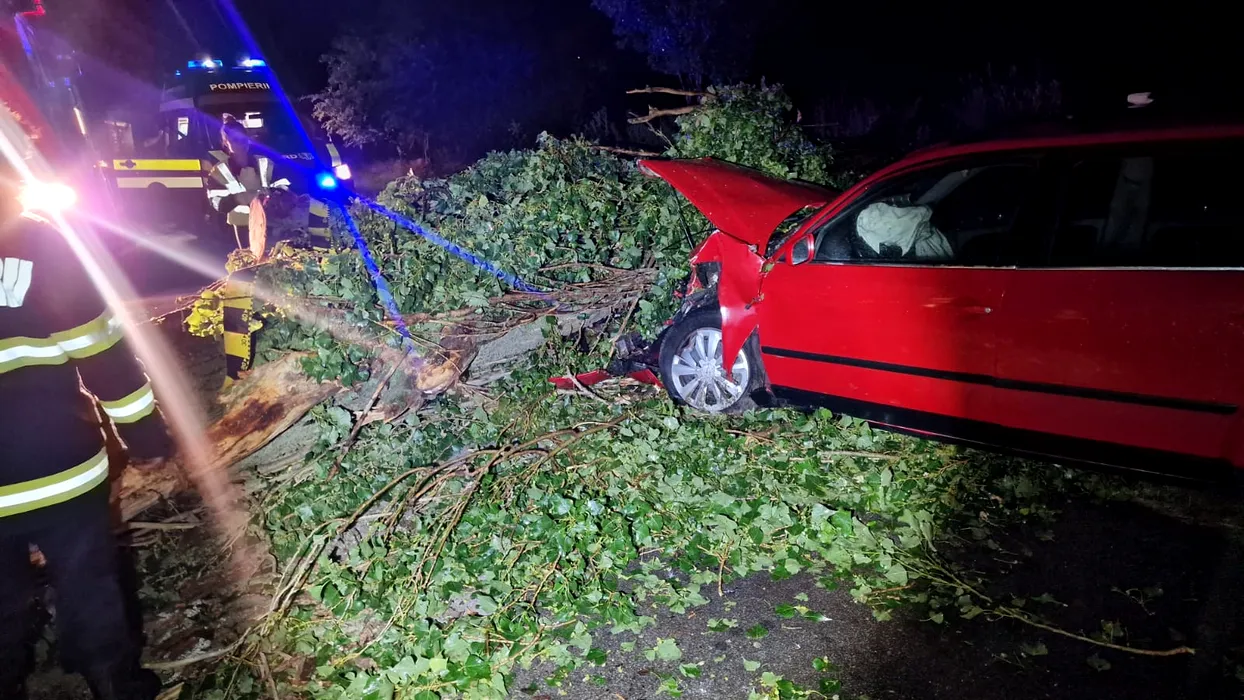 Un copac s-a prăbușit peste o mașină. Două persoane au ajuns de urgență la spital