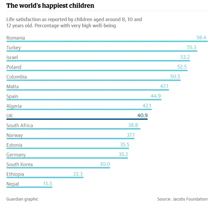 Copiii de opt ani din România, pe primul loc într-un top internațional al fericirii