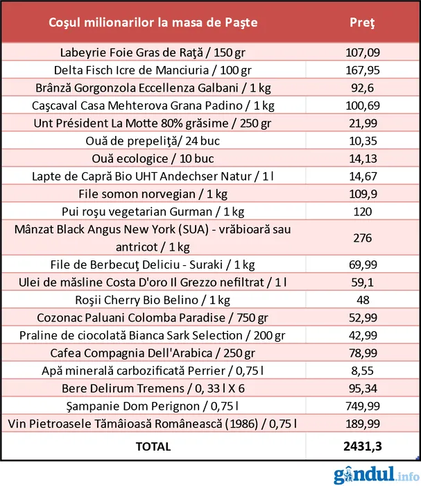 COȘUL MILIONARULUI ROMÂN. Cât costă cele mai SCUMPE produse pe care le găsești în supermarketuri pentru masa de Paște