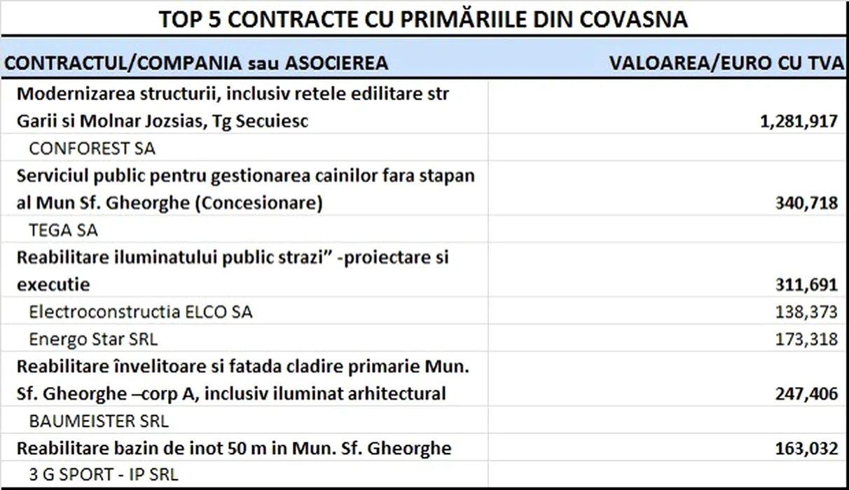 COVASNA. Unde au mers banii publici în 2014. Topul firmelor care au contracte locale cu statul