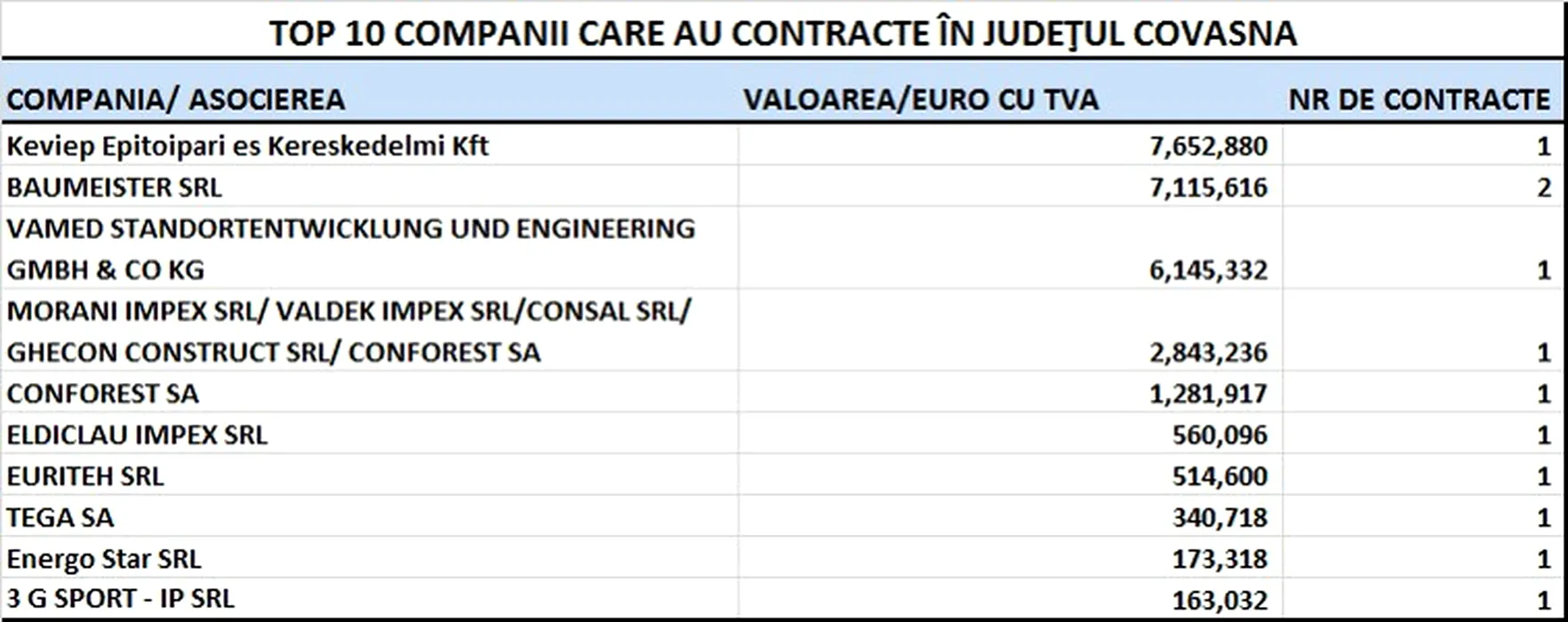 COVASNA. Unde au mers banii publici în 2014. Topul firmelor care au contracte locale cu statul