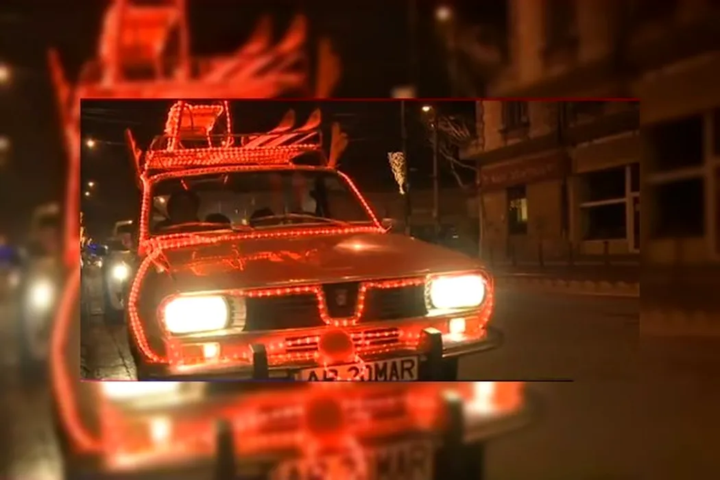 „Crăciun-mobilul”. Cum și-a împodobit Dacia un bărbat din Timișoara