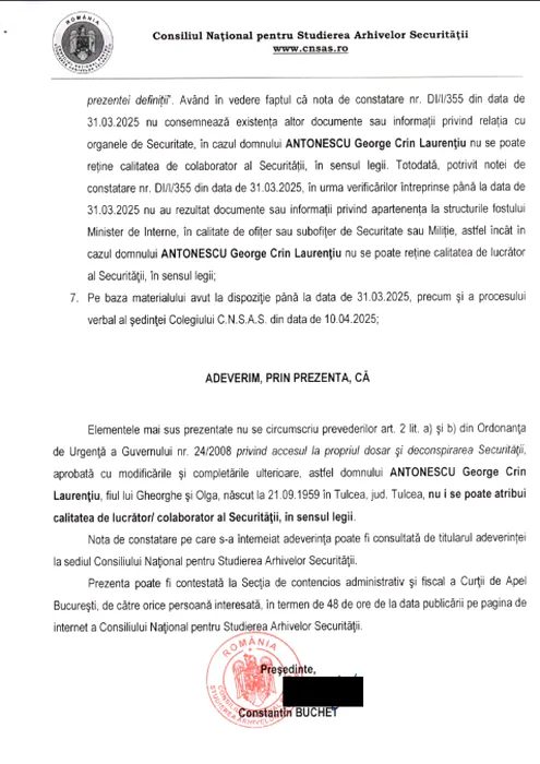 Crin Antonescu, candidat la prezidențiale, NU a fost colaborator al Securității. Document oficial / Antonescu: Am fost o VICTIMĂ a Securității