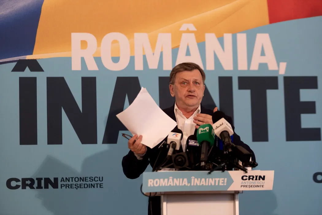 Crin Antonescu, candidatul Aliantei Electorale 'Romania Inainte' la alegerile prezidentiale, sustine o conferinta de presa, la sediul de campanie, in Bucuresti, joi, 17 aprilie 2025. ALEXANDRA PANDREA/GMN