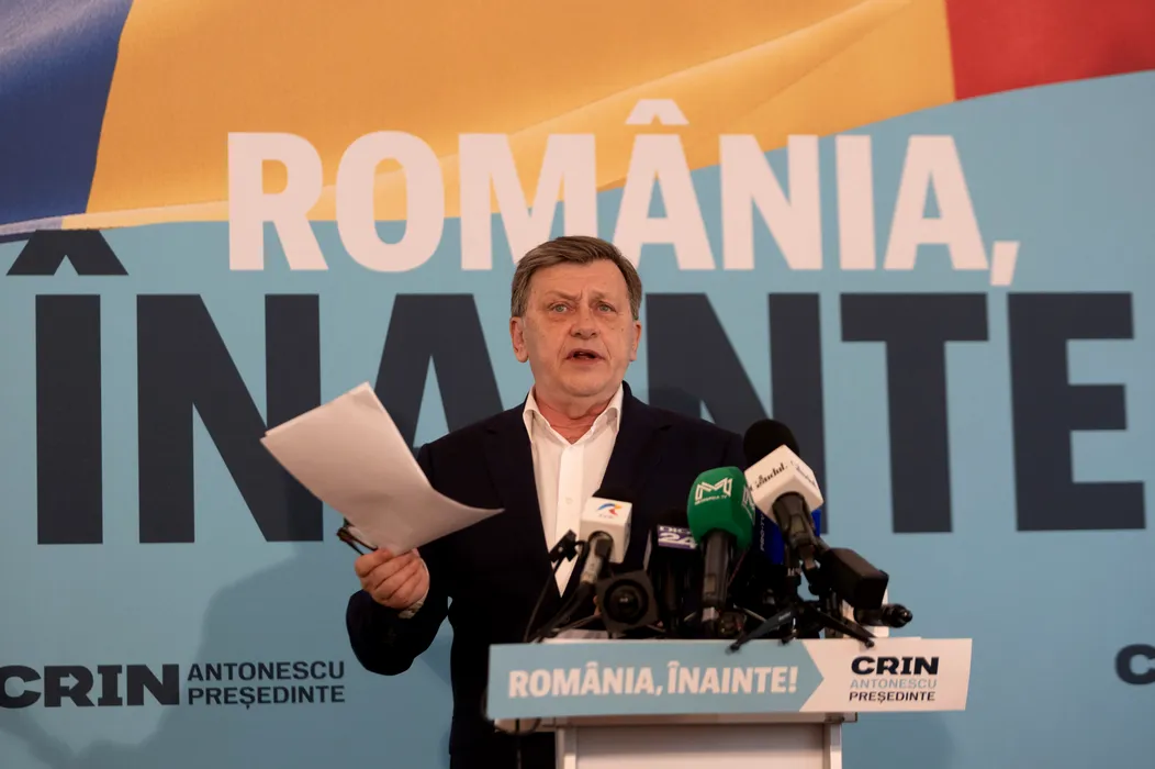 Crin Antonescu, candidatul Aliantei Electorale 'Romania Inainte' la alegerile prezidentiale, sustine o conferinta de presa, la sediul de campanie, in Bucuresti, joi, 17 aprilie 2025. ALEXANDRA PANDREA/GMN