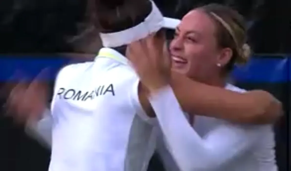 Ana Bogdan și Jaqueline Cristian au exultat de bucurie după ce au întors rezultatul împotriva Ucraina de la 0-2 la 3-2 (captură DigiSport)