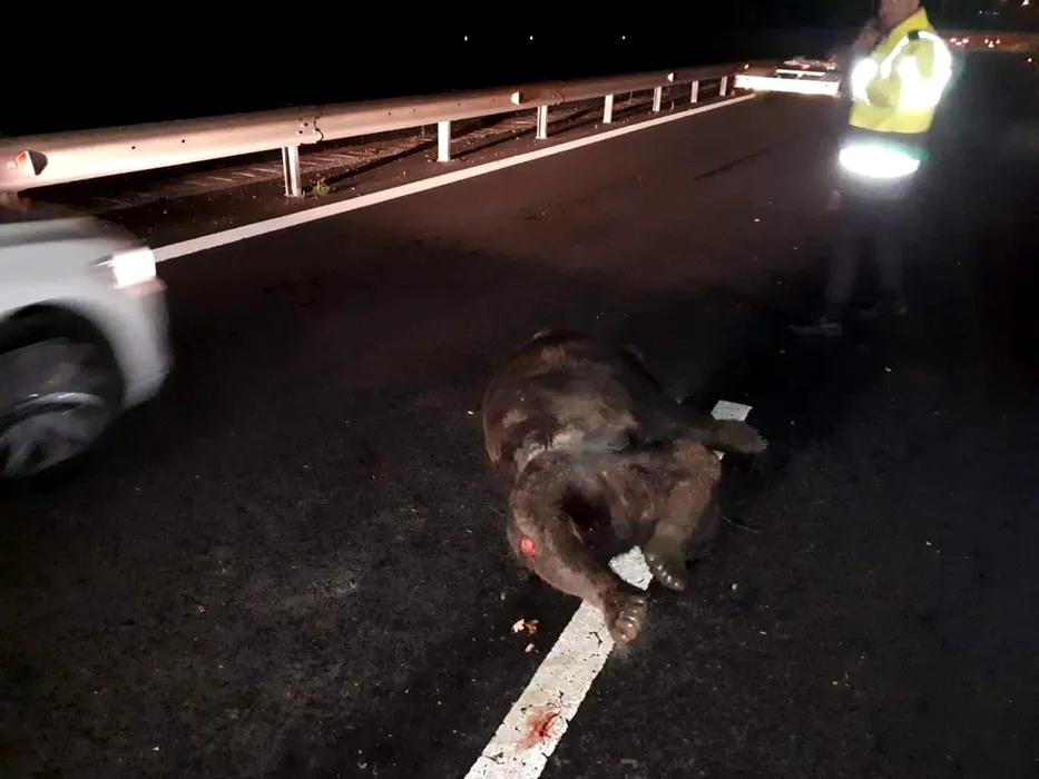 #cugandullaanimale. Un urs a fost călcat de mașină pe autostradă: „Autoritățile sunt pur si simplu criminale! Nu există pasaj pentru animalele sălbatice!”