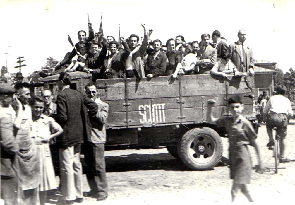 Întâmpinarea Armatei Roşii (Colentina). Tovarăşii de la Apărarea Patriotică Sursa - Fototeca online a comunismului românesc, cota 28/1944