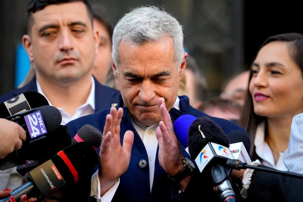 Calin Georgescu (C) reactioneaza la intrebarile jurnalistilor, dupa ce si-a depus candidatura pentru functia de presedinte al Romaniei la Biroul Electoral Central (BEC) din Bucuresti, vineri, 7 martie 2025. ANDREEA ALEXANDRU / MEDIAFAX FOTO