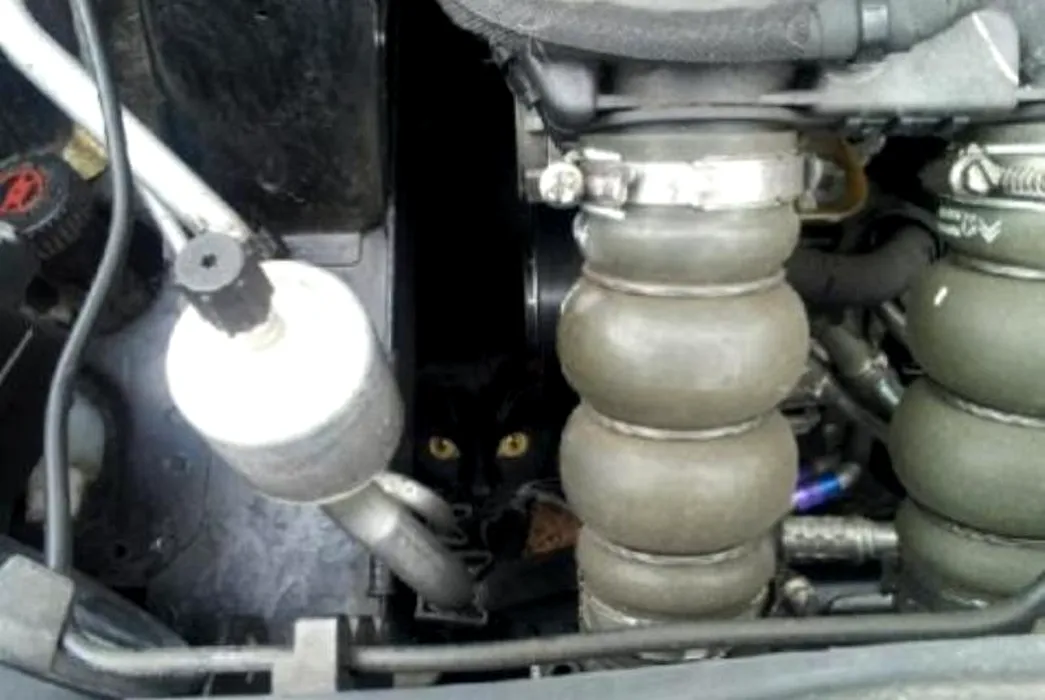 GALERIE FOTO: Cum a fost salvată o pisică de sub capota unei mașini