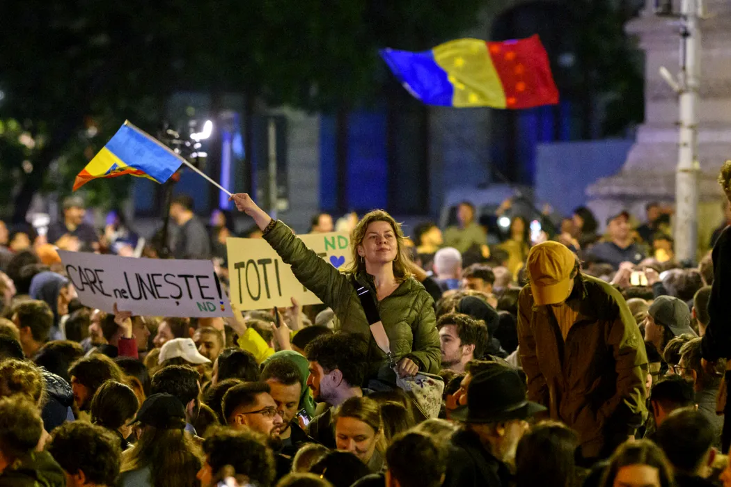 Persoane sarbatoresc victoria candidatului independent la alegerile prezidentiale, Nicusor Dan, in Bucuresti, luni 19 mai 2025. ALEXANDRU DOBRE / MEDIAFAX FOTO.